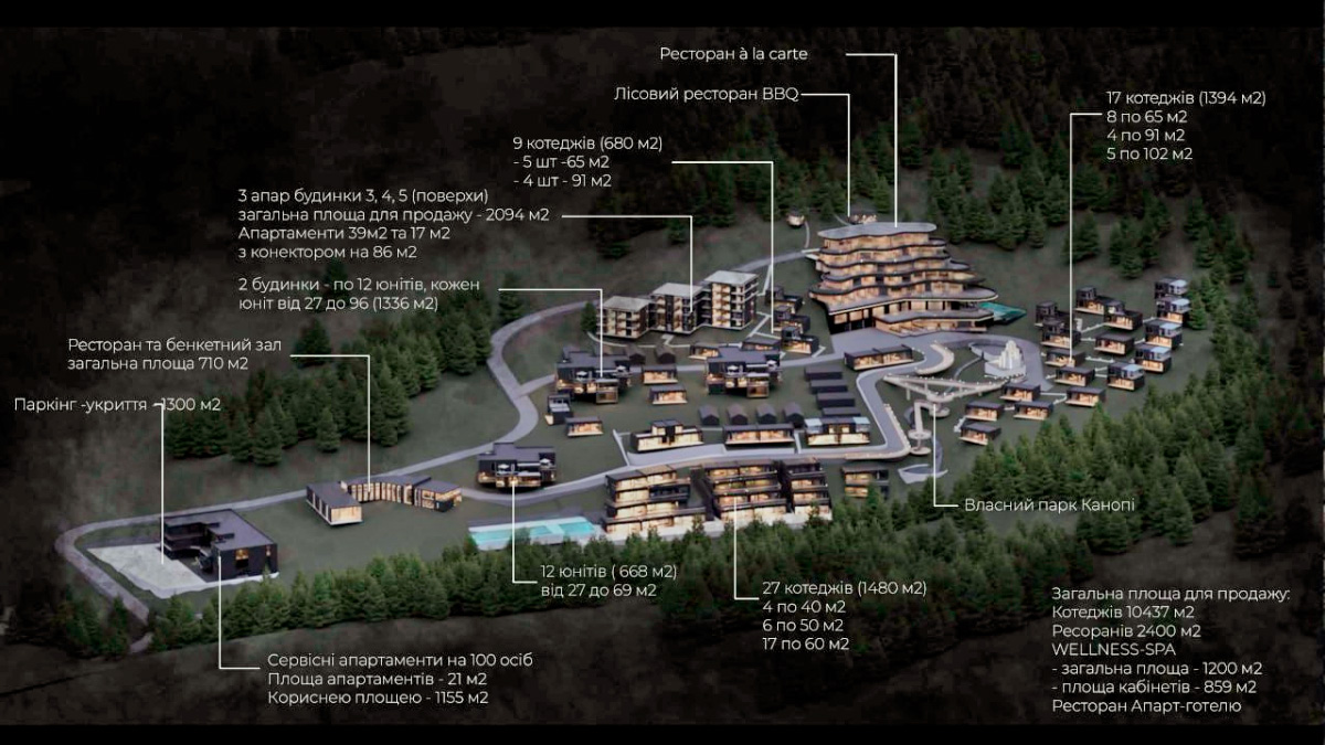 Центральна частина комплексу — сучасний SPA-готель, що поєднує елегантний апарт-готель, ресторан з панорамною терасою та розкішний Wellness-SPA із видовим басейном. Тут комфорт поєднується з вишуканістю, а кожен день починається зі справжнього відчуття відновлення і спокою.
