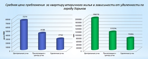 В июле 2017 года в центральных районах Харькова средний ценовой показатель зафиксирован – 1033 долл. США/кв. м. или 26 921 грн./кв. м., в приближенных к центу районах – 710 долл. США/кв. м. или 18 483 грн./кв. м., в удаленных района города – 520 долл. США/кв. м. или 13 552 грн./кв. м.