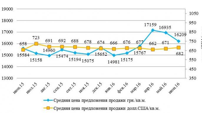 В июне 2016 года средняя стоимость продажи 1 кв. м офисных помещений в Харькове составила 682 долл. США/кв. м., или 16 209 грн./кв. м, передает СтройОбзор.