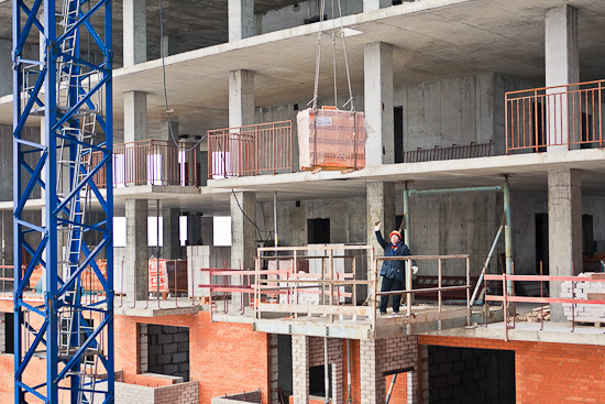 Кроме того, на 11-м этаже 3-й и 4-й секций ведется кладка ограждающих конструкций и межквартирных перегородок.