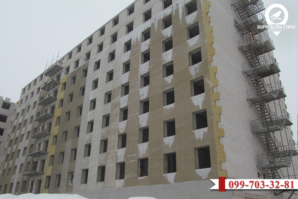 • на шестом этаже завершена кладка внутренних стен, начата кладка санитарных узлов;