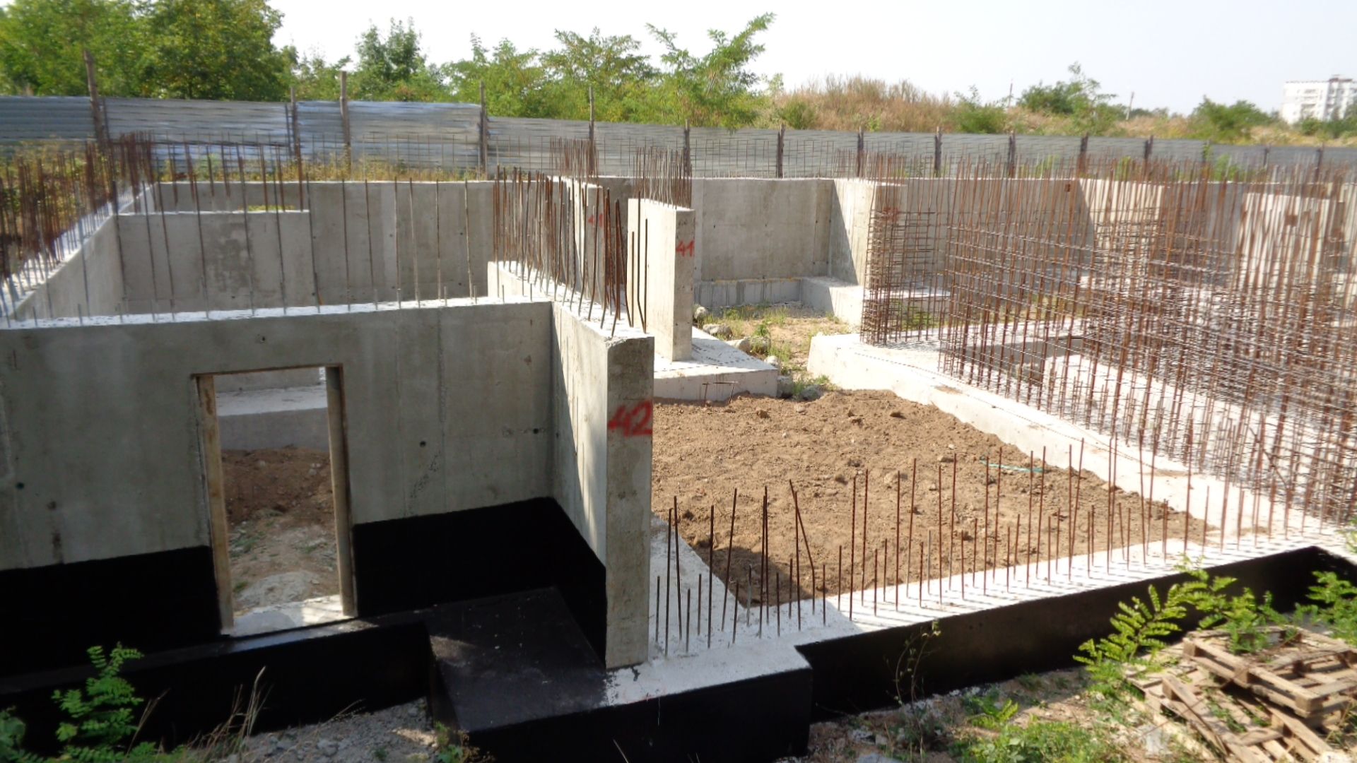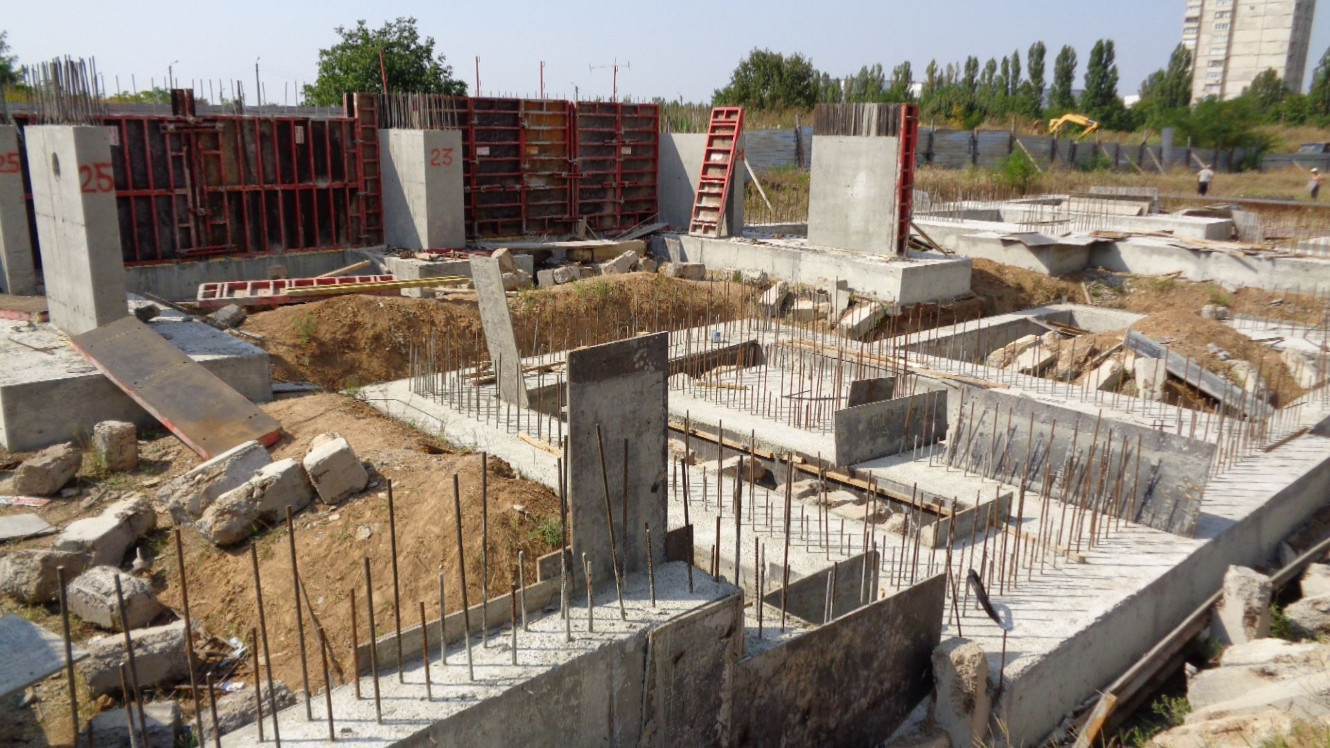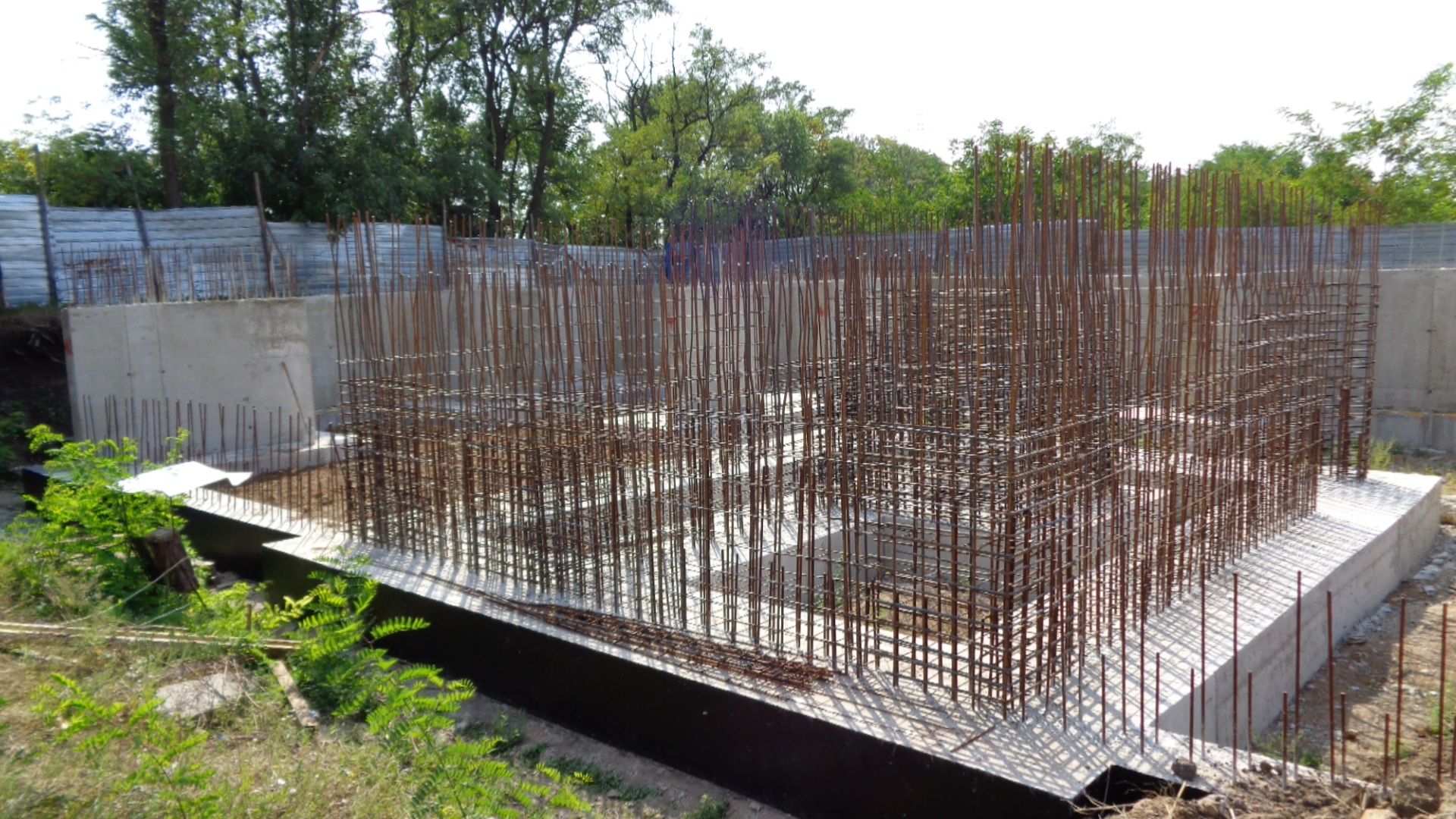 На 50% выполнены работы по заливке вертикальных элементов стен цокольного этажа на 1-й и 2-й секциях.