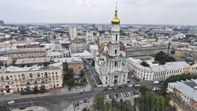 С высоты птичьего полета можно увидеть сразу три собора: Успенский, Благовещенский и Покровский. Также открываются красивейшие виды на сквер "Стрелка", улицу Клочковскую и площадь Конституции