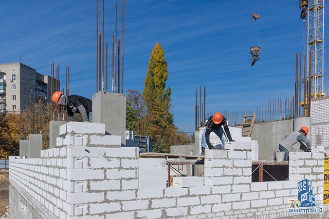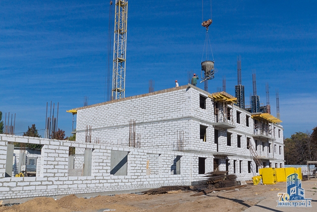 В 1-й секции ЖК «Садовый» строители СМУ-21 ОДО «Жилстрой-2» полностью выполнили работы по устройству перекрытия над 3-м этажом. На 4-м этаже завершается заливка бетоном вертикальных конструкций, начата кладка наружных стен.