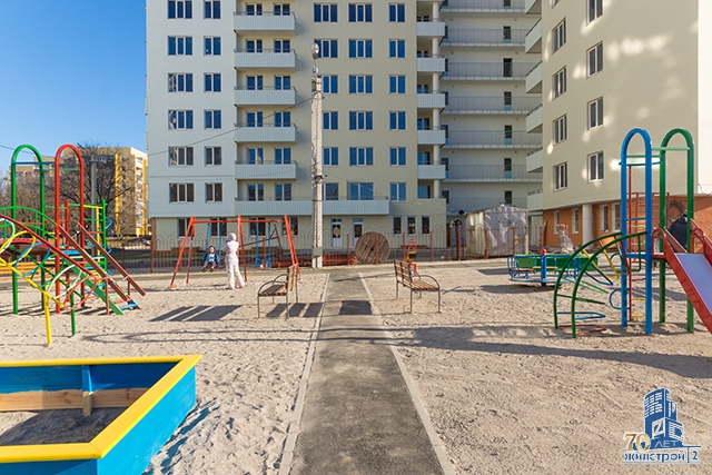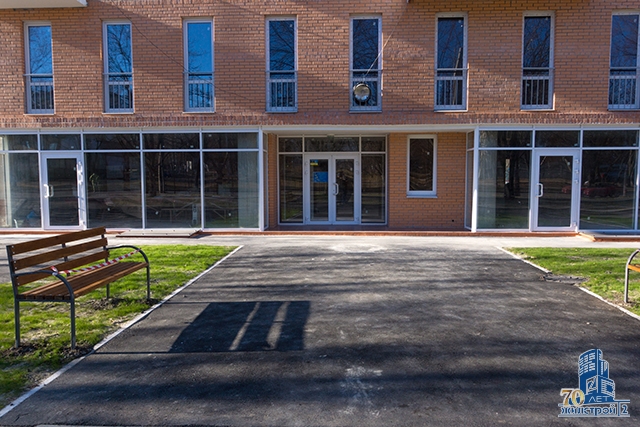 Завершены работы по благоустройству придомовой территории: заасфальтированы тротуары и подъездные дороги, уложена напольная плитка перед парадным входом в здание, установлена детская площадка.