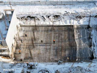 В среду, 1 февраля, завершены работы по армированию фундаментной плиты секции 1/4 ЖК "Квартет". Подготовленный к бетонированию каркас укрыт защитной пленкой, заливка плиты будет производиться, как только позволят погодные условия.