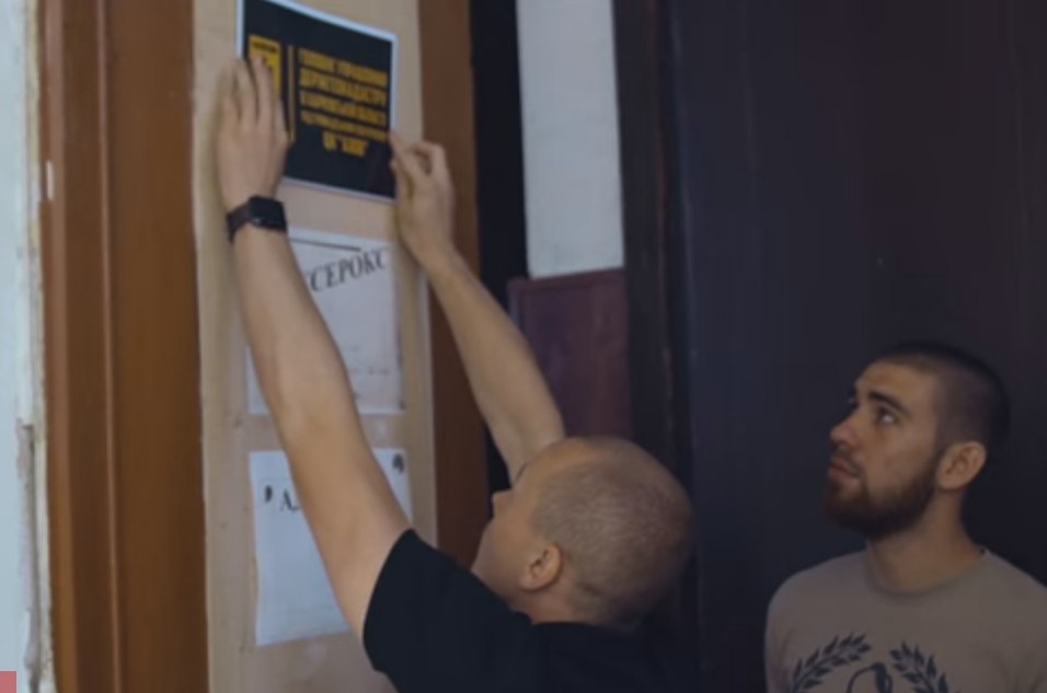 Рядом с управлением Госгеокадастра представители Харьковского отделения Гражданского корпуса "Азов" прикрепили табличку, где указано, что ведомство находится под гражданским контролем.