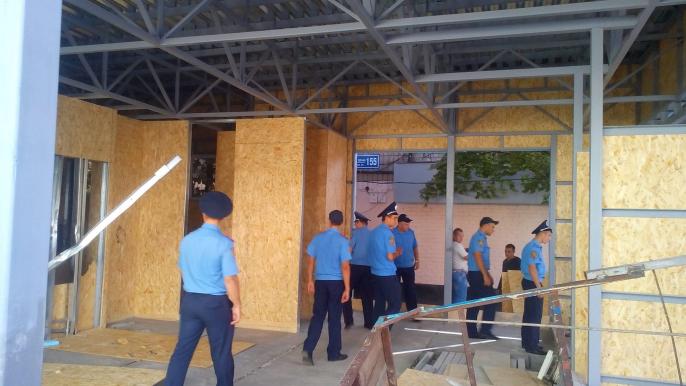В воскресенье по просьбе местных жителей, активисты, вместе с депутатом горсовета Д.Марининым, обнаружили незаконное строительство очередного заведения «Кулиничи» по адресу ул. Полтавский шлях, 155. Местные жители, которым мешает это здание (кстати выполнение с нарушением всех нормативов) очень порадовались большому количеству милиционеров, которые наконец "заметили" незаконное двухэтажное здание .... А до этого, несмотря на неоднократные обращения местных жителей, оно спокойно строилось