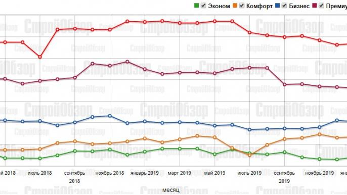 В классе «премиум» цена снизилась на 0,4% и на сегодня составляет 27 941 грн. за кв. м.
