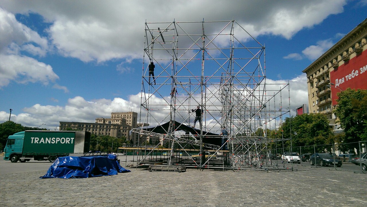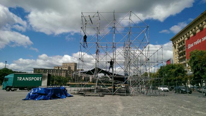 На площади Свободы обустраивают самую большую в Украине фан-зону, которая сможет вмещать до 80 тыс. болельщиков.