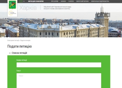 Уже неделю в Харькове работает сайт электронных петиций, где харьковчане могут оставлять свои пожелания и предложения городским властям.