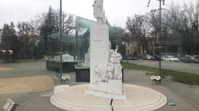 Под миниатюрной копией памятника Тарасу Шевченко на площади Архитекторов треснуло основание.