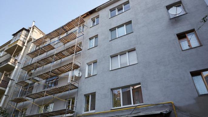 В Харькове по ул. Дарвина восстанавливают фасады жилых домов №19 и 19а.