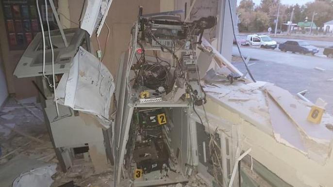 Неизвестные взорвали банкомат.  От действия взрывного устройства банкомат разорвало на части. Также поврежден фасад здания, дверь мебель, техника и стены.