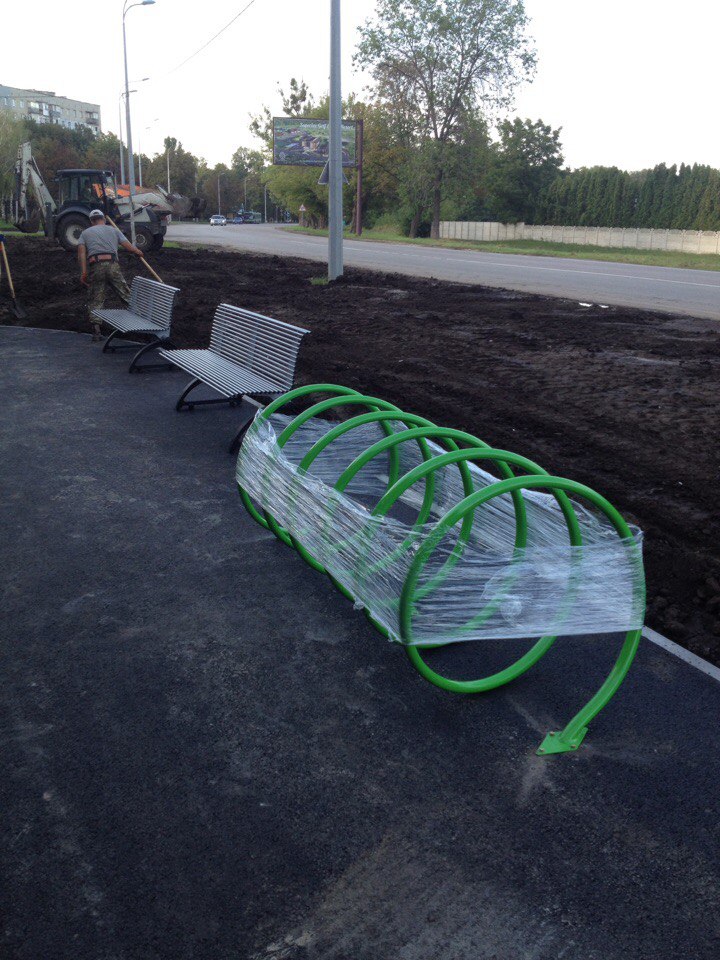 Также вдоль велодорожки уже поставили лавочки для отдыха велосипедистов и несколько велопарковок.