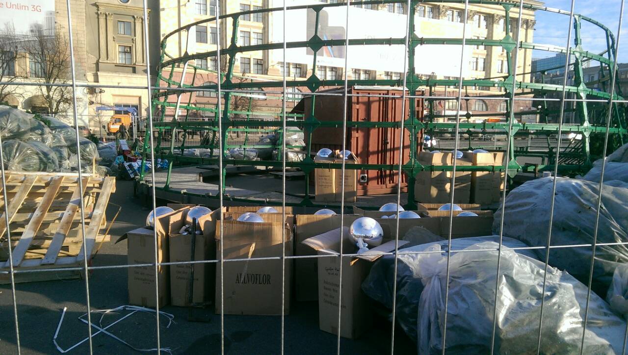 Детали елочной конструкции привезли на площадь вчера, 15 ноября, передает СтройОбзор.