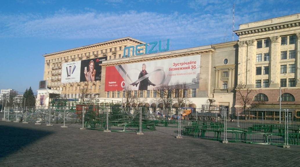 В Харькове на площади Свободы начали устанавливать новогоднюю елку.