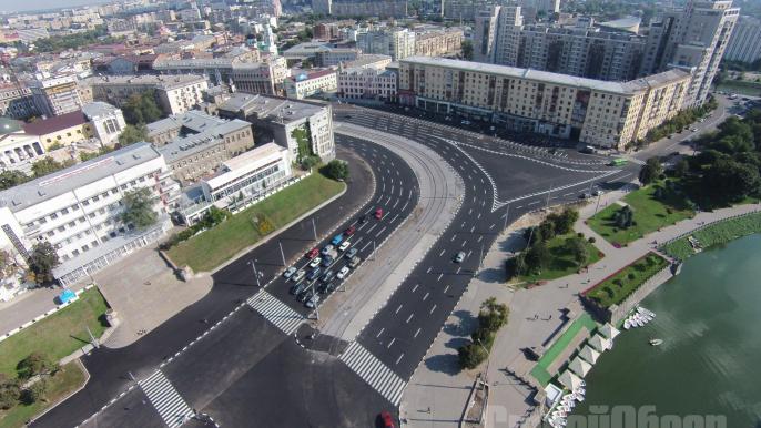 СтройОбзор публикует первые кадры с высоты 150 метров, реконструированной Павловской площади.