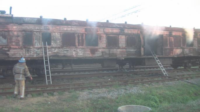 Возгорание возникло в одном из вагонов, который был выведен из эксплуатации и стоял вместе с другими такими вагонами в отстойнике.