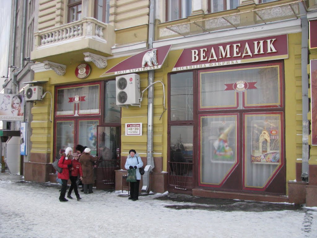 - на магазине "Мишка", где ранее располагалась кондитерская Жоржа Бормана.