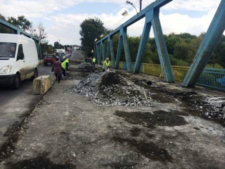 Сейчас на мосту проводят подготовительные работы: разбирают асфальтобетонное покрытие и демонтируют повышенное ограждение.
