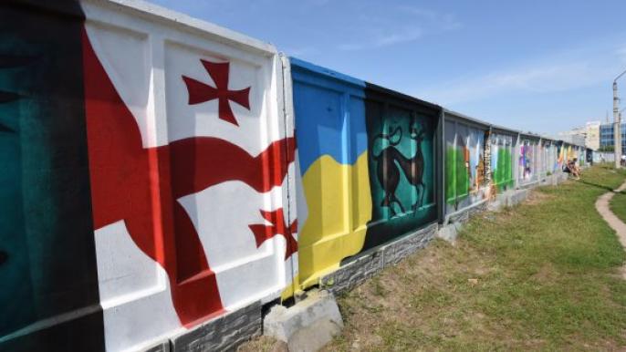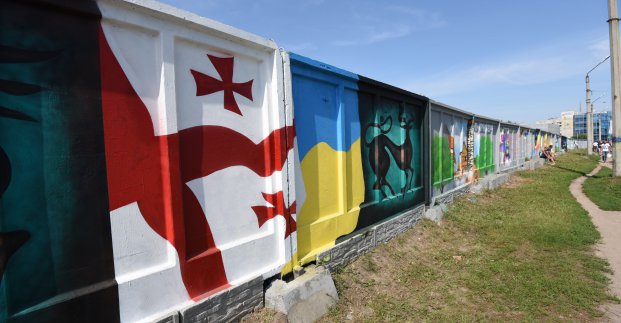 Украинские и грузинские художники разрисовали стену по ул. Клочковской, напротив Свято-Пантелеимоновского храма.