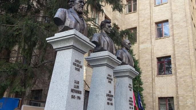 23 апреля, возле главного корпуса Харьковского национального университета им. В. Каразина открыли постамент трем нобелевским лауреатам: Ильи Мечникову, Льву Ландау и Саймону Кузнецу, передает СтройОбзор.