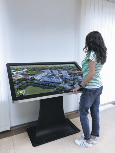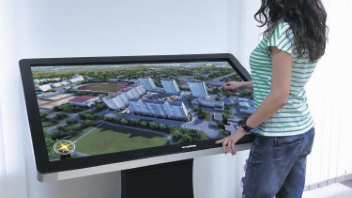 Это более сложный и технологичный инструмент. Как правило, первое знакомство с объектом происходит на расстоянии, как бы с высоты. В несколько кликов можно перенестись внутрь объекта, который представлен в виде условного конструктора. Один из вариантов такой визуализации – multi-touch стол со специальным 3D-приложением.