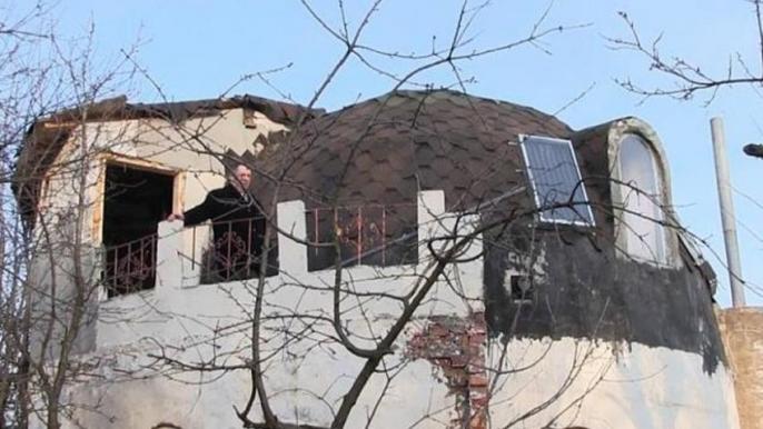 Полтавчанин Виталий Майборода построил купольное здание и обогревает помещение солнечными воздушными коллекторами.