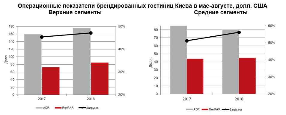 «Гостиничный рынок Киева по всем операционным показателям опережает результаты прошлого года: по итогам прошедших восьми месяцев зафиксирован рост загрузки на 1 п.п. в верхних сегментах и на 2 п.п. в средних, среднего тарифа – на 15 долл. в верхних и на 2 долл. в средних, – комментирует Татьяна Веллер. – Похоже, что экономическая и туристическая деятельность в регионе неуклонно восстанавливается, поэтому можно ожидать, что бизнес-сезон последних четырех месяцев позволит киевским отельерам укрепить позиции и закрыть год с более высокими по сравнению с 2017 годом результатами».