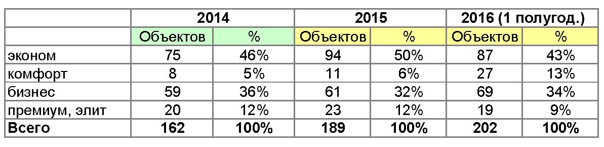 - комфорт-класс – 22%.