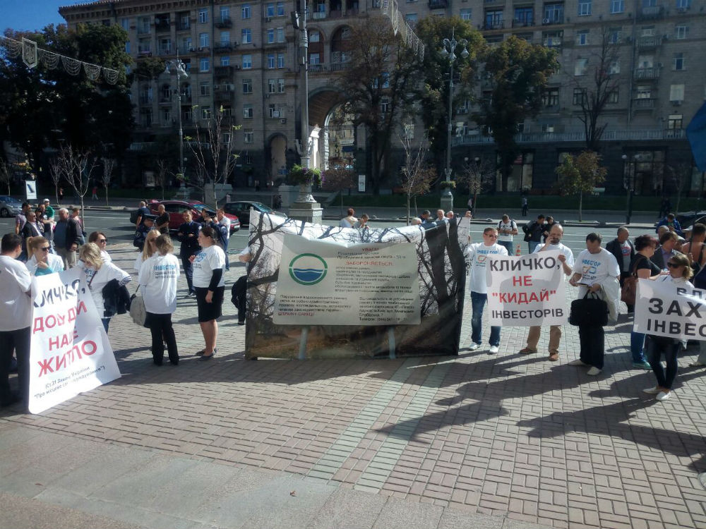 Около полусотни инвесторов жилого комплекса “Солнечная Ривьера”, который строится на Никольской Слободке, вышли на акцию под стены Киевской горгосадминистрации (КГГА), передает СтройОбзор