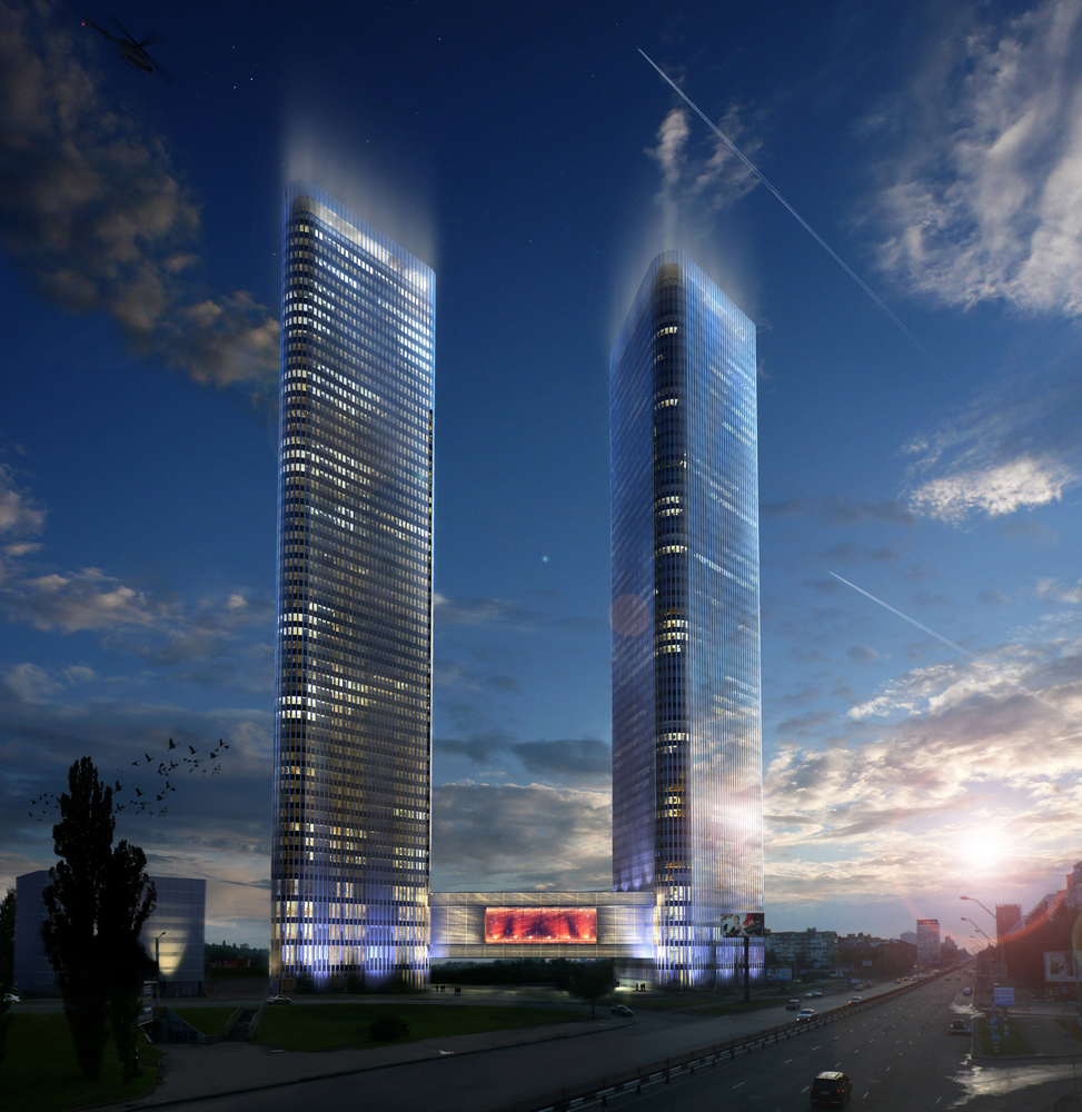 На земельном участке общей площадью 1,3 га планируется строительство 54-этажного многофункционального комплекса Victory Towers, состоящего из двух установленных на стилобате высотных блоков.