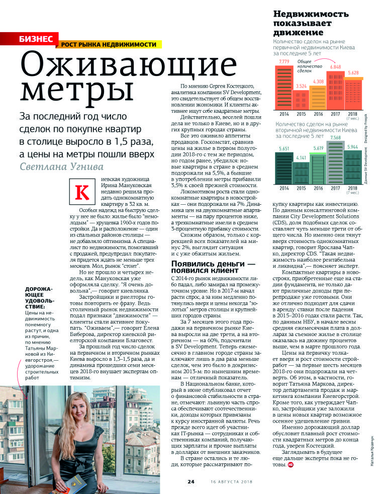 Недавно «Киевгорстрой» анонсировал увеличение стоимости квадратного метра в своих объектах. Журнал «Новое время» поинтересовался у застройщиков, чем обусловлено подорожание и какие квартиры вырастут в цене больше всего. Среди опрошенных экспертов — директор Департамента маркетинга и продаж компании Татьяна Маркова.