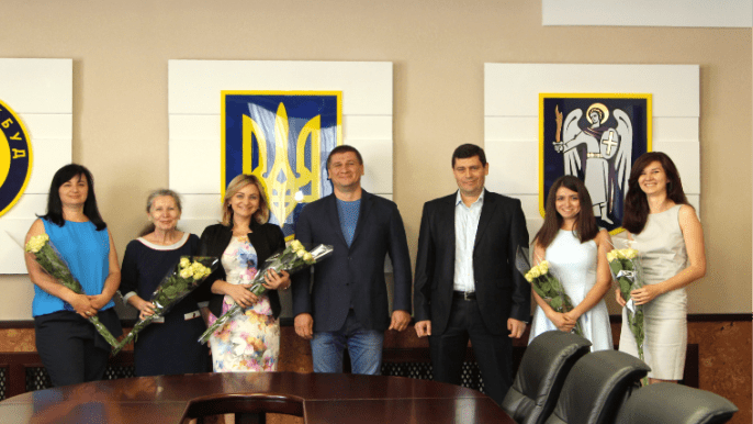 За плодотворное сотрудничество с Холдинговой компанией, высокий профессионализм и значительные трудовые достижения Нине Радуге, Оксане Гемзюк, Яне Чекиной и Елене Илюшенко объявлена ​​Благодарность Главы правления — президента ЧАО «ХК «Киевгорстрой».