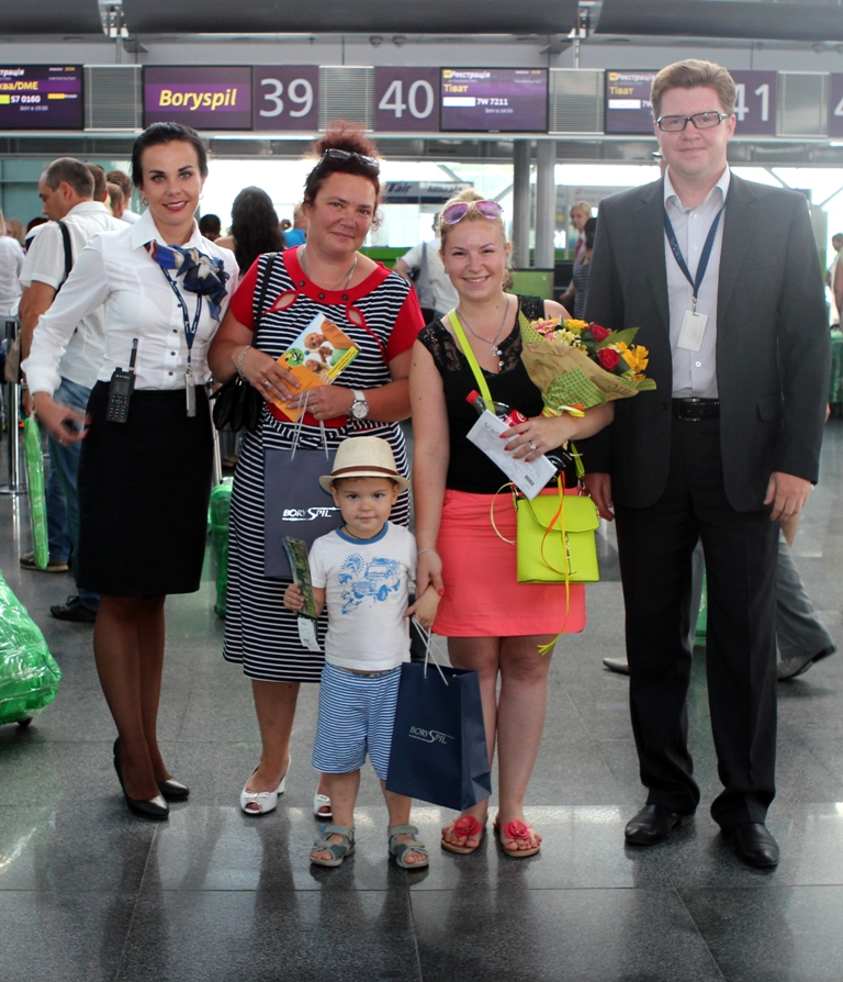 В аэропорту «Борисполь» четырёхмиллионного пассажира встретили поздравлениями, цветами и памятными подарками. Также сотрудники аэропорта пригласили Анну Грищенко вместе с членами семьи в бизнес-зал, в котором пассажиры смогли с комфортом провести свободное время перед отправлением на курорт.
