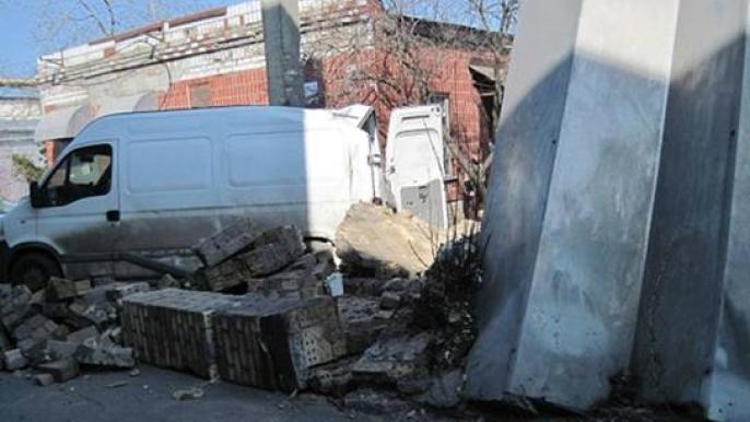 "Утром на территорию предприятия, расположенного в Голосеевском районе, заехал автомобиль с рабочими, которые должны были забрать товар со склада. Когда водитель приблизился к помещению, одна из кирпичных стен упала на него", - говорится в сообщении.
