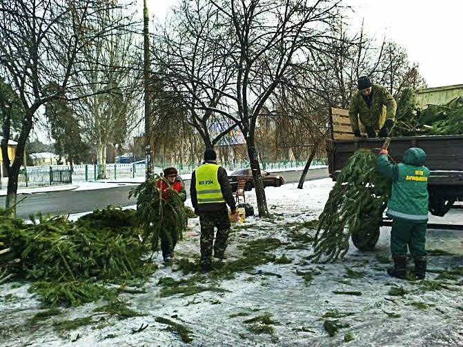 Новогодние елки, которые остались на территории елочных ярмарок, собрано и утилизировано на производственных базах "Киевзеленстроя".