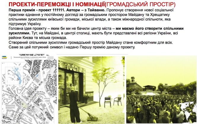 В конкурсе, который касается общественного пространства Майдана и центрального ядра Киева, победил проект, разработанный авторским коллективом из Тайваня (Alessandro Martinelli, Hanju Chen, Xinyu Zhao).