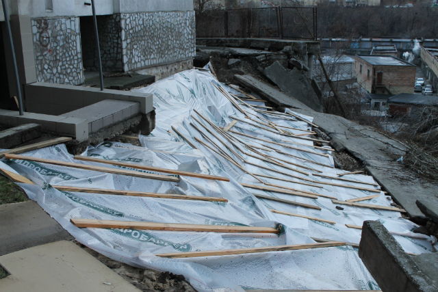 В Соломенском районе Киева проведут реконструкцию подпорных стенок на склоне возле дома №14 на ул. Лобановского (просп. Краснозвездный), где зимой обрушилась стена.