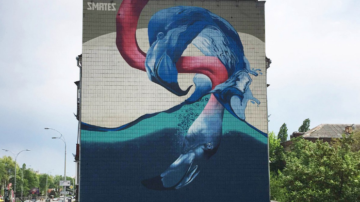 В Киеве бельгийский художник Smates завершил мурал с изображением голубого фламинго.
