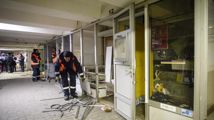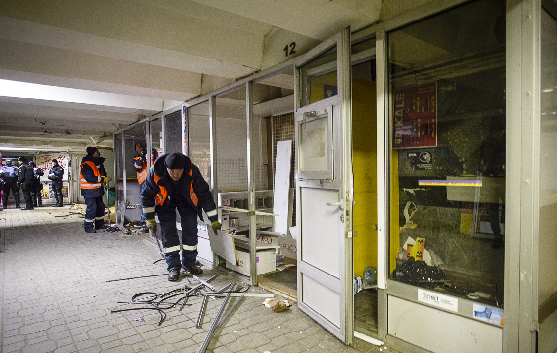 Сегодня, 13 февраля, в подземных переходах возле станции метро "Майдан Независимости" начали сносить МАФы.