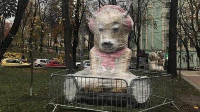 К новогодним праздникам в Киеве начали устанавливать световые скульптуры.