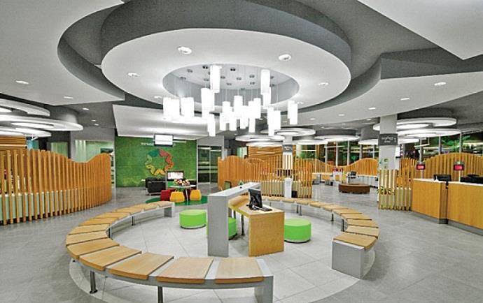 Новый сервисный центр "ГОТОВО!" будет располагаться на площади в 660 кв. м, а внутреннее пространство здания будет выполнено в стиле "лофт". Для удобства посетителей вся площадь центра будет визуально разграничена на зоны. Для скорости предоставления сервисов посетители будут разбиты на потоки.