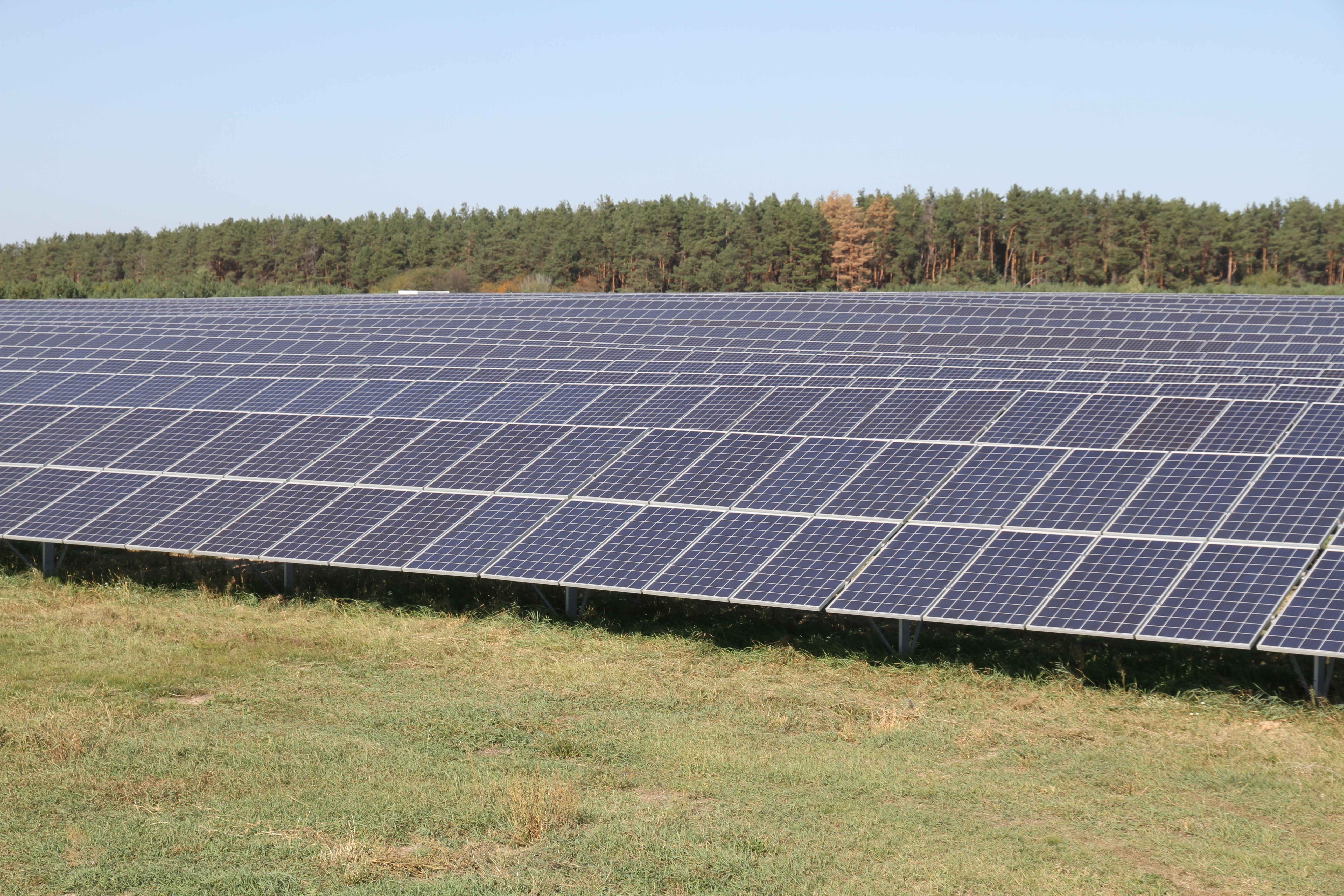 "Первым реализованным этапом стало строительство солнечной электростанции в г. Большая Александровка. К энергосистеме страны в августе 2017 года была подключена первая очередь этой СЭС мощностью 6 МВт, которая состоит из 22200 солнечных модулей. В 2018 году будут завершены три следующих очереди, а общая мощность Дымерской СЭС-1 достигнет 50 МВт, что соответствует 5% мощности типичного блока атомной электростанции", - говорится в сообщении.