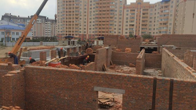 Так, рабочие продолжают возводить стены Бучанской гимназии. Заказчиком строительства выступает Департамент регионального развития и жилищно-коммунального хозяйства КОДА.
