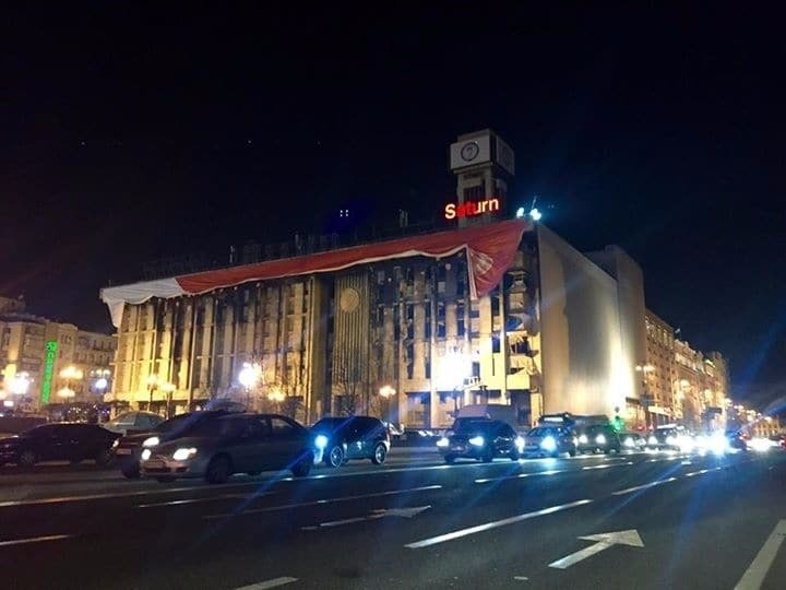 Новый баннер на стене админздания Федерации профессиональных союзов Украины (ул. Крещатик, 18/2) был размещен вечером 9 декабря.