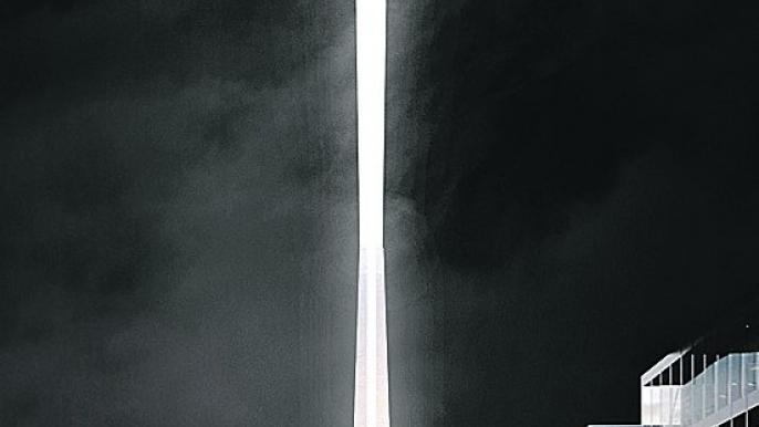 Вечером свет будет проходить по всей трубе, заряжая ее, а достигнув вершины, зажигать яркий луч. Днем дымовая труба снова будет обычной.