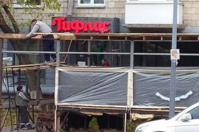 В центре Киева к ресторану "Тифлис" пристраивают опасную площадку.