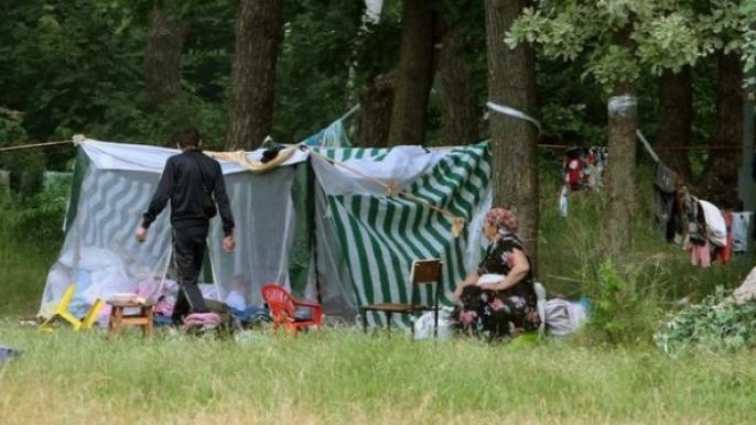 Около 55 беженцев поселились в парке Победы в Днепровском районе. Как пишет Сегодня, табор обосновался на окраине парка. На берегу небольшого водоема цыгане поставили десять летних палаток. На натянутых между деревьями веревках сушится белье, женщины кипятят воду на кострах, а по территории табора бегают дети. "Мы тут пару дней всего живем. Всего нас 55 человек — 25 взрослых и 30 детей. Приехали из Славянска, так как дома наши разбомбили", — говорит одна из женщин. По ее словам, оставаться в городе стало просто опасно, поэтому они и сбежали.